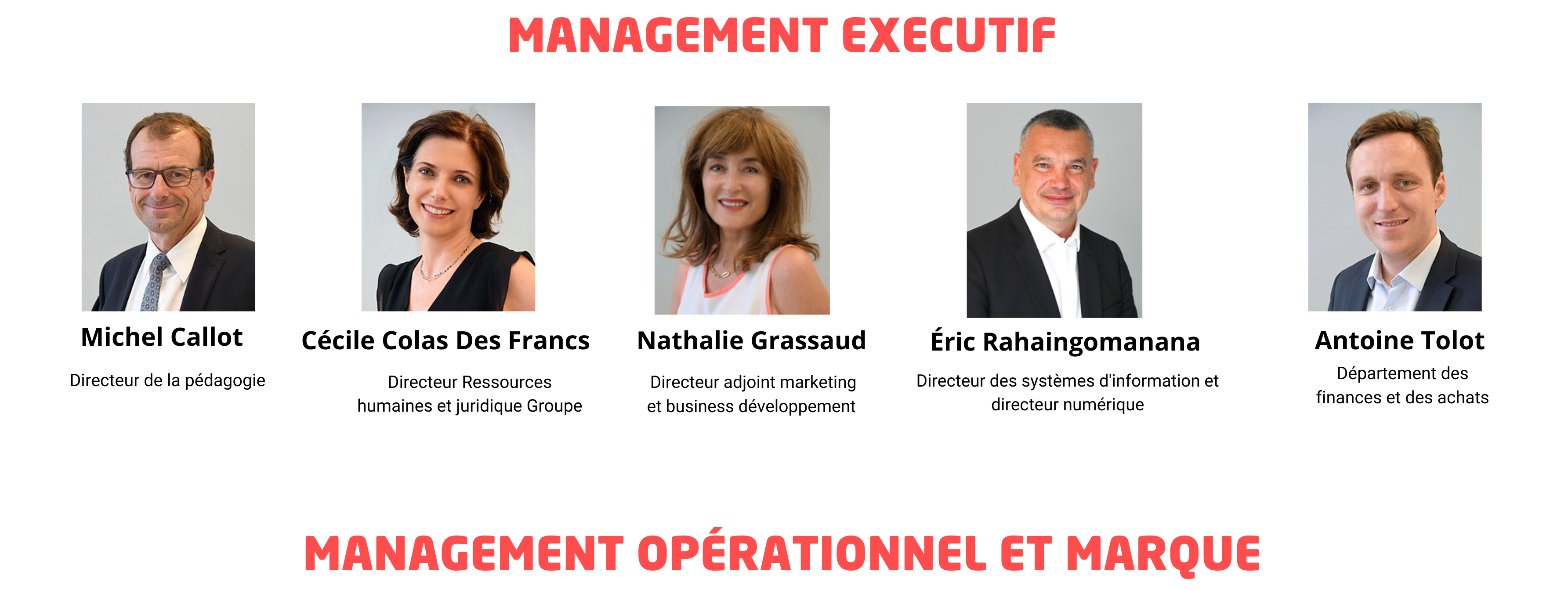 La Direction opérationnelle des Établissements est opérée, d'une part, par des Directeurs de zones géographiques (ou Directeurs de groupe) et, d'autre part, par des Directeurs d'enseignes nationales, ces derniers intervenant dans la définition des programmes, le développement commercial et la qualité d'exécution pédagogique sur le plan local.