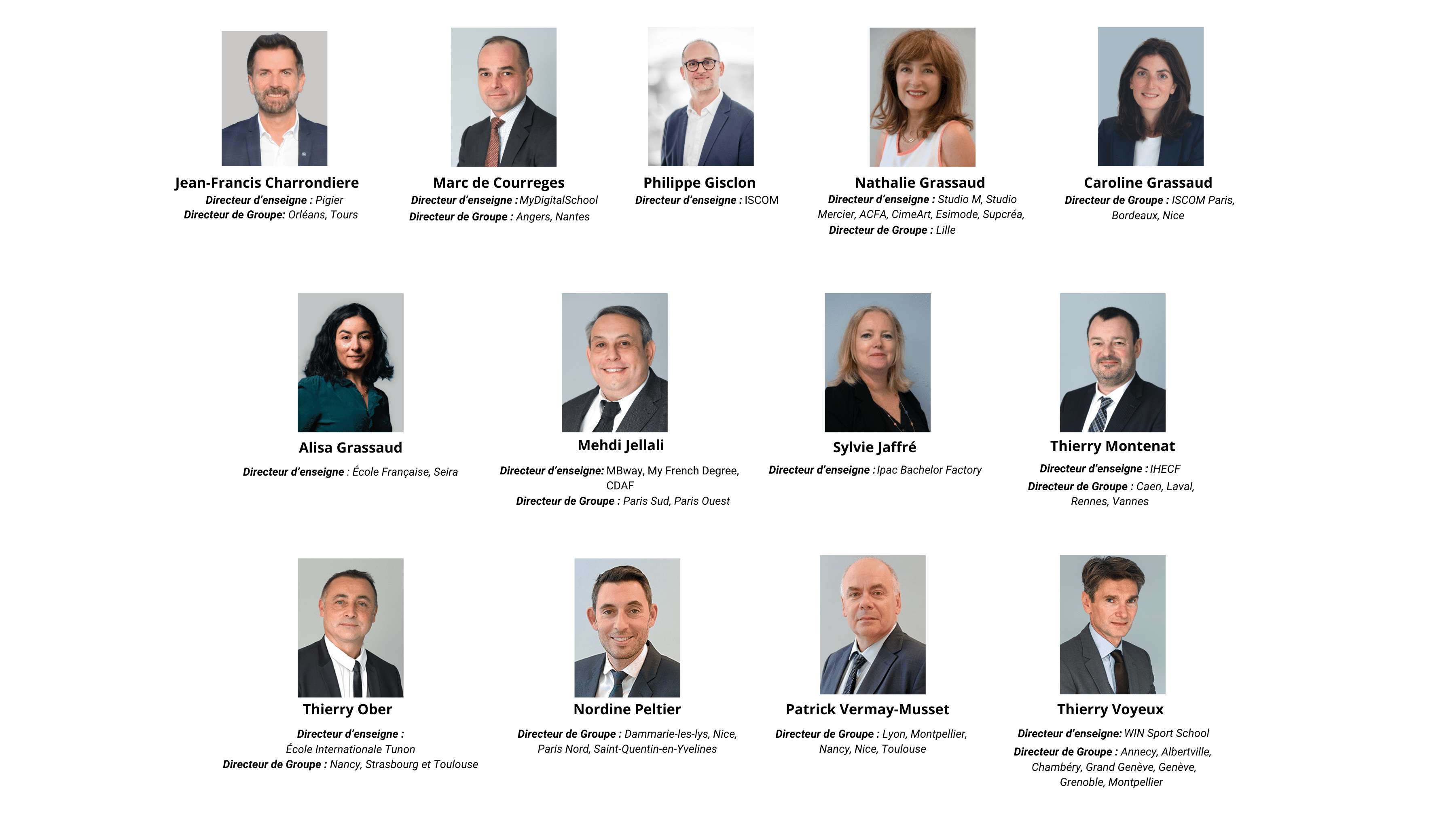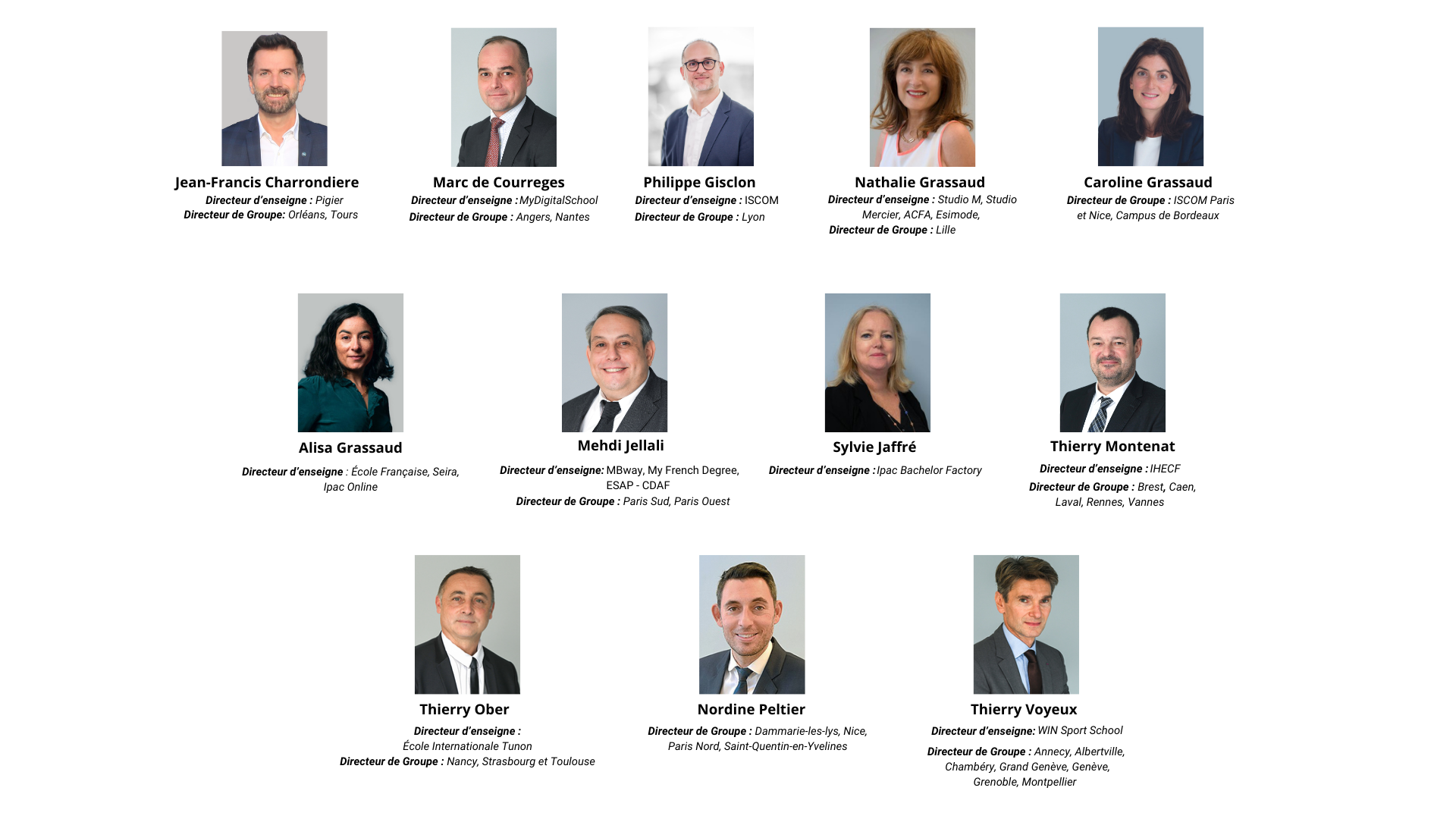Les Directions de groupe opérationnelles des régions et les Directions d’enseignes décentralisées partagent et diffusent nos objectifs communs et en soignent l’exécution dans les campus et écoles, notamment en termes de développement, de qualité et de placement en entreprises.